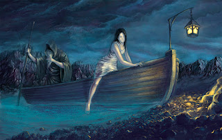 seu leito navega Caronte, o barqueiro encarregado de transportar as almas até o