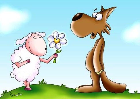 Lobo deu muitos conselhos, se apiedou da triste ovelha que não sabia balir e