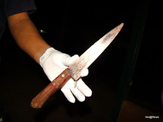 encontrado próximo à barragem, com sete perfurações a faca, uma direta no
